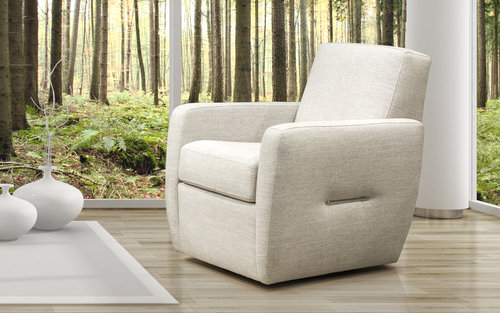 The Ventura swivel accent chair will seduce you. It features soft lines, beautiful chrome details, plush seating and a convenient swivel base. Perfect for condo living! Choice of fabrics, leathers and ultra-leathers offered.Read More